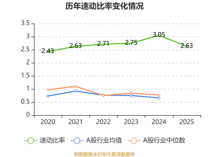 2025年,公司流动比率为3.00云开体育,速动比率为2.63。